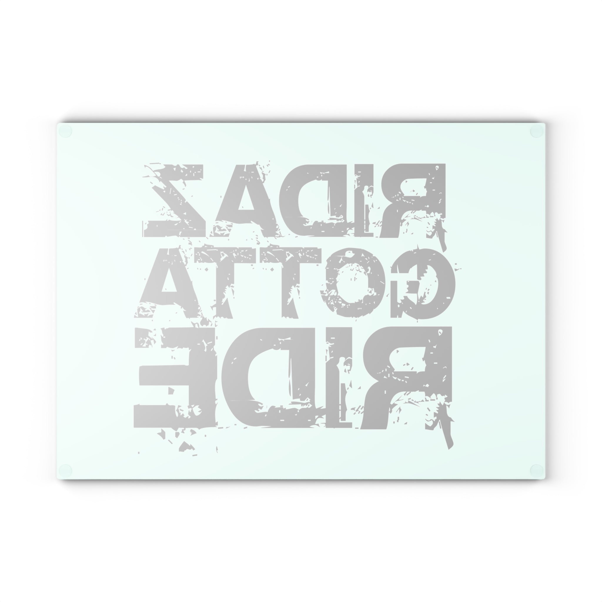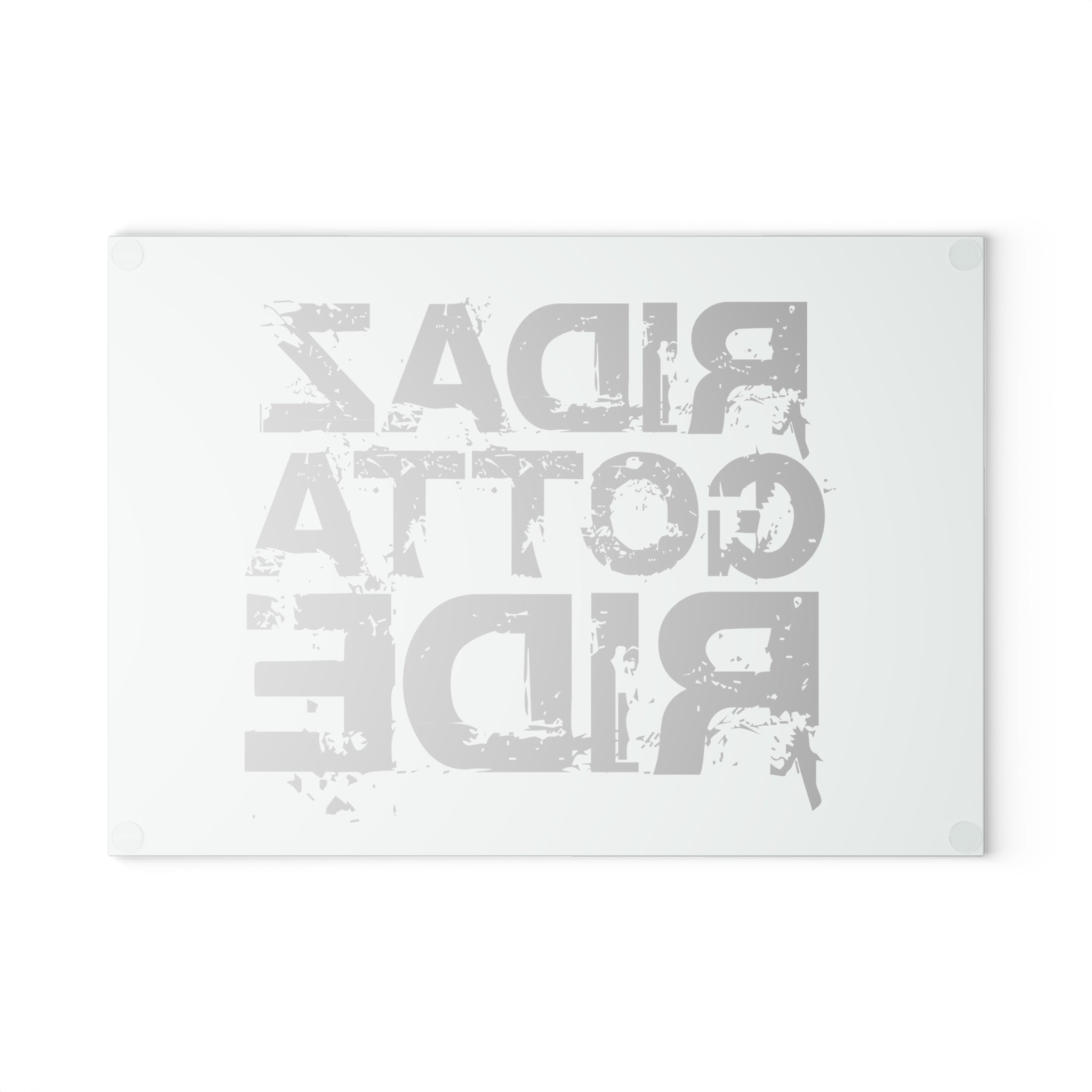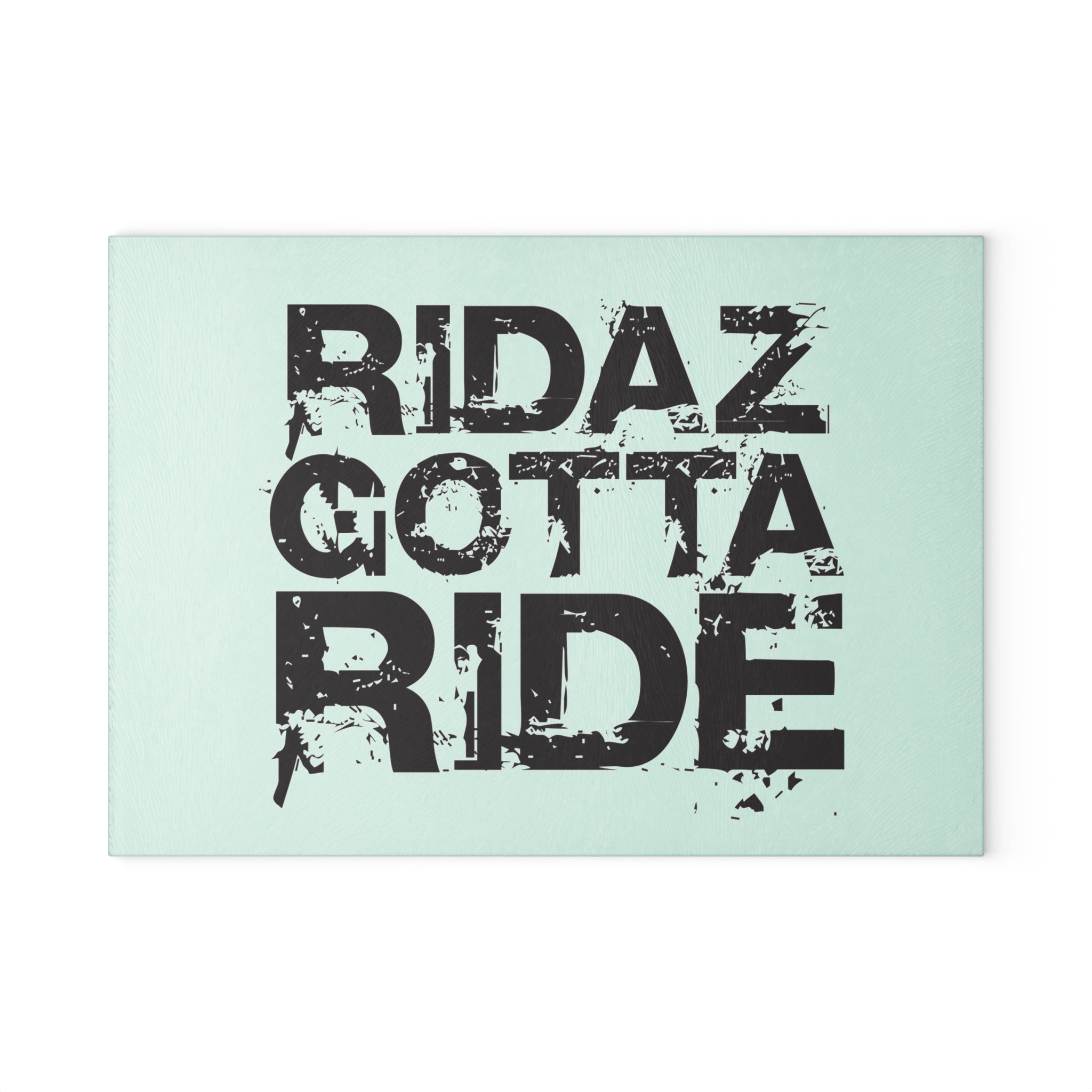 The Ridaz Gotta Ride Glass Cutting Board offers a sleek, durable surface for food preparation and presentation. Made from tempered glass with a non-slip base, it delivers stability, easy cleaning, and lasting performance. Finished with Ridaz Gotta Ride detailing. Ridaz Gotta Eat!